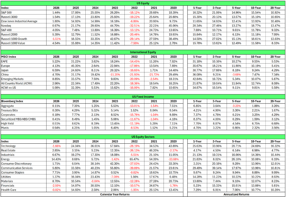 January 2026 Market Returns