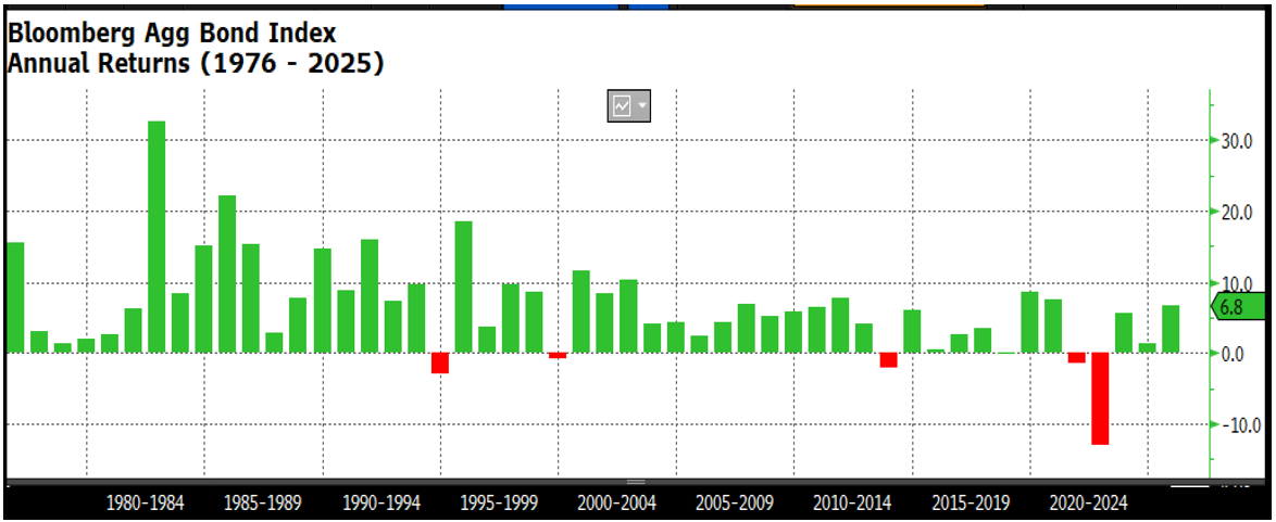 The Bloomberg US Aggregate Bond index (Agg), which acts as a proxy for the intermediate-term investment-grade bond market, increased by +0.6% due to the decline in the 10-Year Treasury yield. Bond prices move inversely to interest rates and credit spreads. The Agg is now higher by +6.8% in 2025. Please see our Bond Primer.